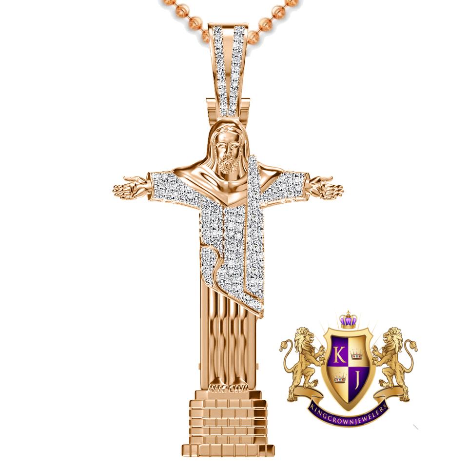 Real Genuine Authentic Diamond 0 60 Cwt 17 Grams Christ Redeemer Statue Jesus Full Body Pendant 10k Rose Gold On Religious Unisex Charm Chain Set 2 25 Walmart Com